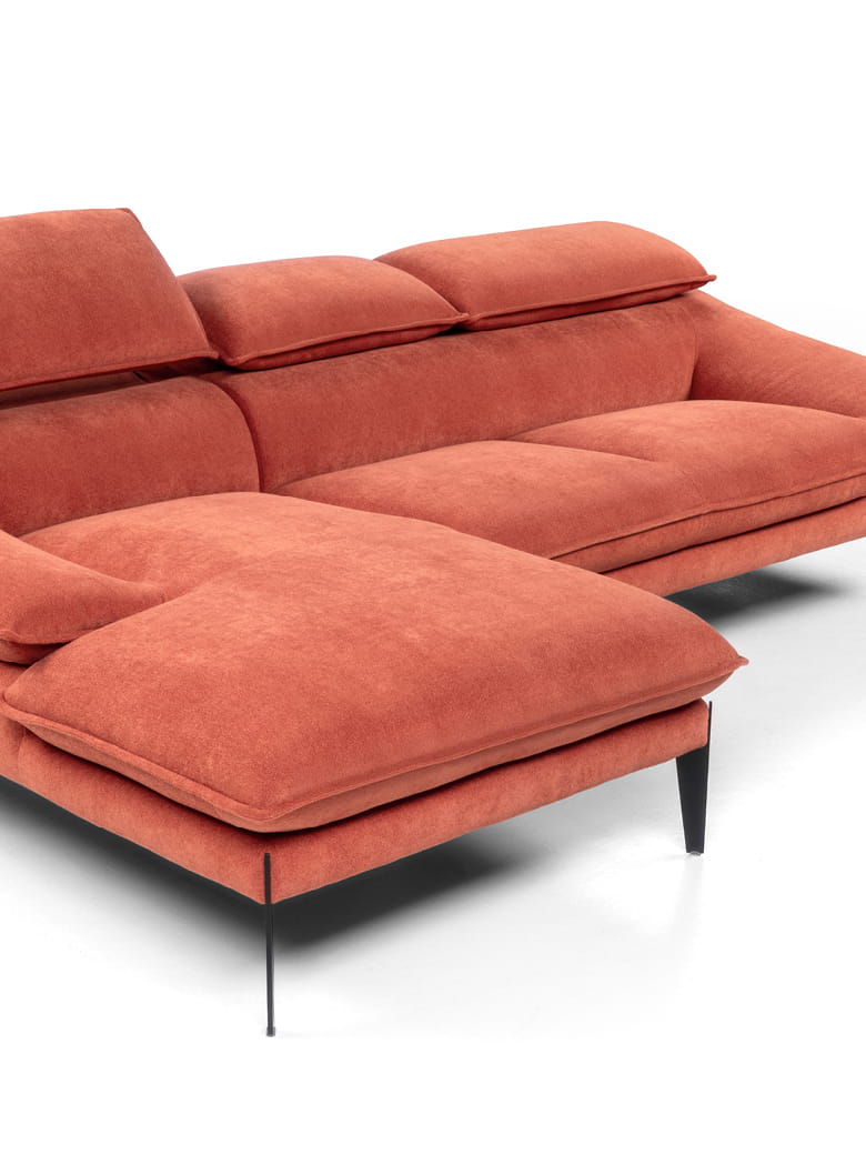 L’accoudoir incliné améliore le soutien tout en valorisant le profil latéral. L’assise est équipée de ressorts ensachés pour une durabilité et un confort optimaux. Les appui-têtes réglables permettent de passer d’un style compact à une assise plus enveloppante. Disponible en plusieurs dimensions, jusqu’à 240 cm, également en version chaise longue.